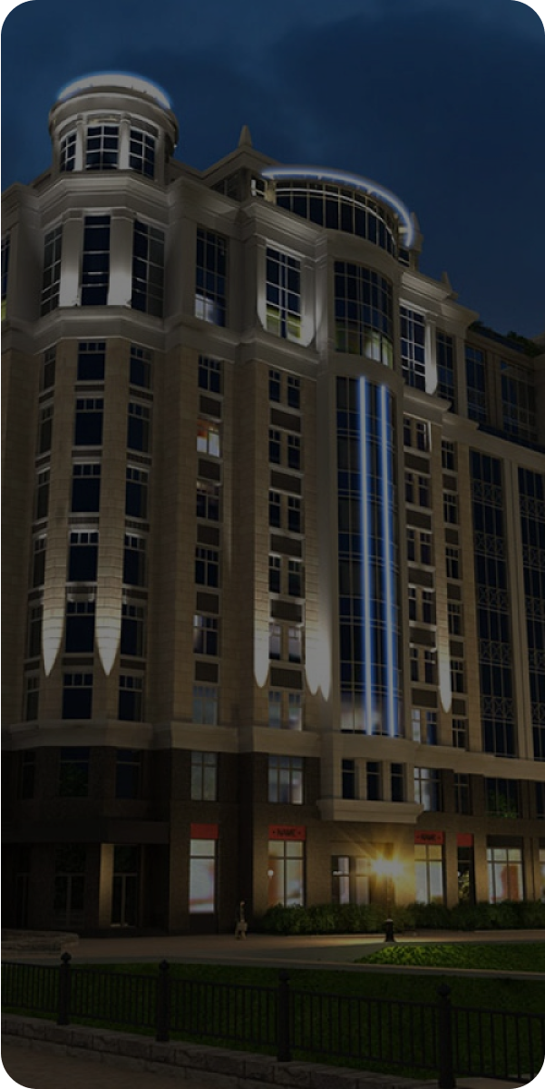 Тихий зеленый элитный квартал включает в себя 14 корпусов переменной этажности высотой от 3 до 24 этажей. В квартале предложен широкий выбор квартир с увеличенной до 7,65 метра высотой потолков, пентхаусов с террасами, дровяными каминами и потолками высотой до 8,25 м.